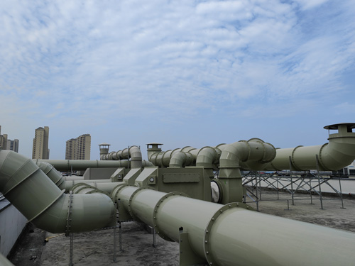 科學實驗室內有機廢氣治理 → 生物炭濾過器 → 引鼓風機 → 尾氣排放